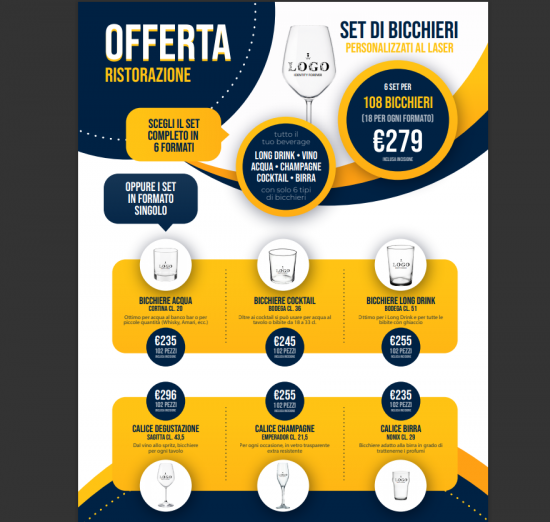 108 BICCHIERI ASSORTITI DA 6 TIPOLOGIE PER 18P.Z